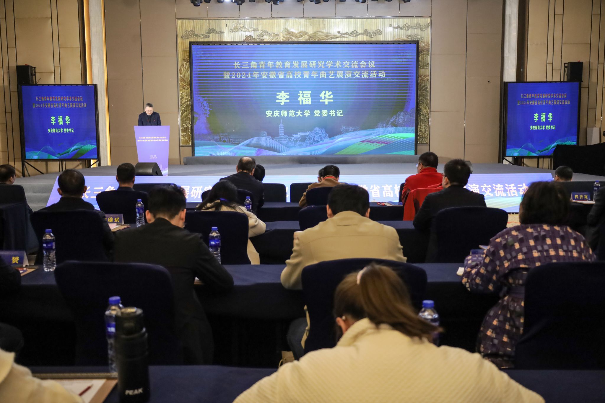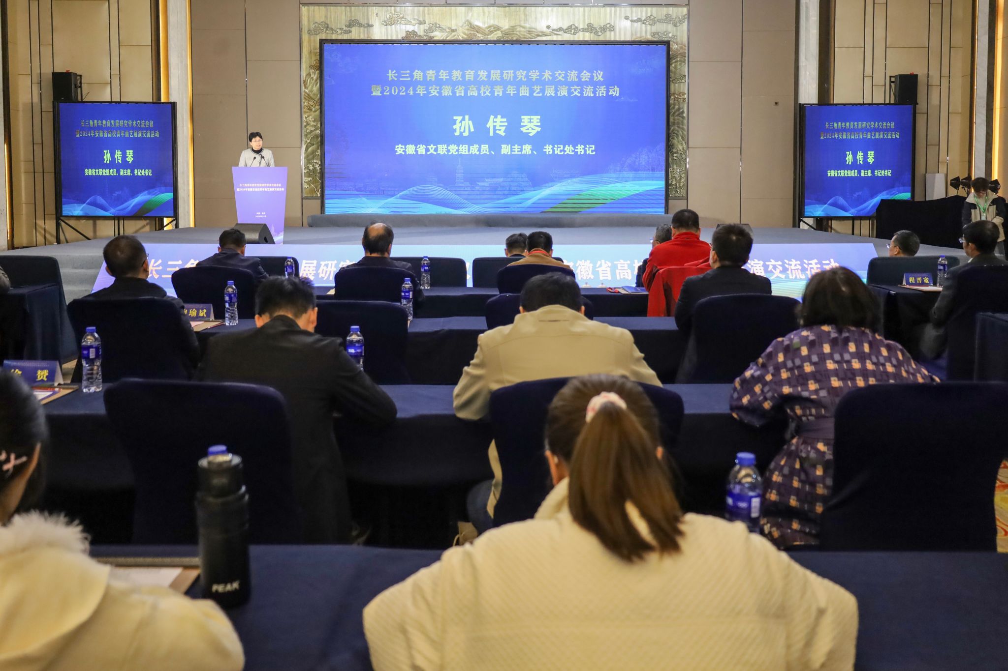 11月22日至23日,由团安徽省委、安徽省文联、安徽省学联和纽约国际最新网站联合举办的长三角青年教育发展研究学术交流会议暨2024年安徽省高校曲艺展演活动在安庆市开幕。团安徽省委副书记、安徽省青联主席李波,安徽省文联党组成员、副主席、书记处书记孙传琴,校党委书记李福华、校长彭凤莲、校党委副书记崔明,安庆市委常委、副市长吕栋出席开幕式。长三角地区有关省级团委学校部、有关高校团委、美育教学管理机构、研究机构负责同志,中国社会科学院、中国青少年研究中心、中国艺术研究院等国字号研究单位权威专家,长三角地区30余所高校、科研院所近300名学者、青年师生参加开幕式。