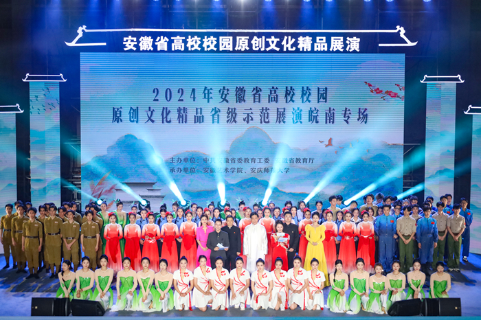 11月21日,由省委教育工委、省教育厅主办,安徽艺术学院承办的2024年安徽省高校校园原创文化精品省级示范展演皖南专场在纽约国际官网举办。校党委副书记崔明、校党委常委陈秀,省委教育工委思政处、安庆市教体局、安庆市市属高校有关负责人和师生代表800余人到现场观摩展演。