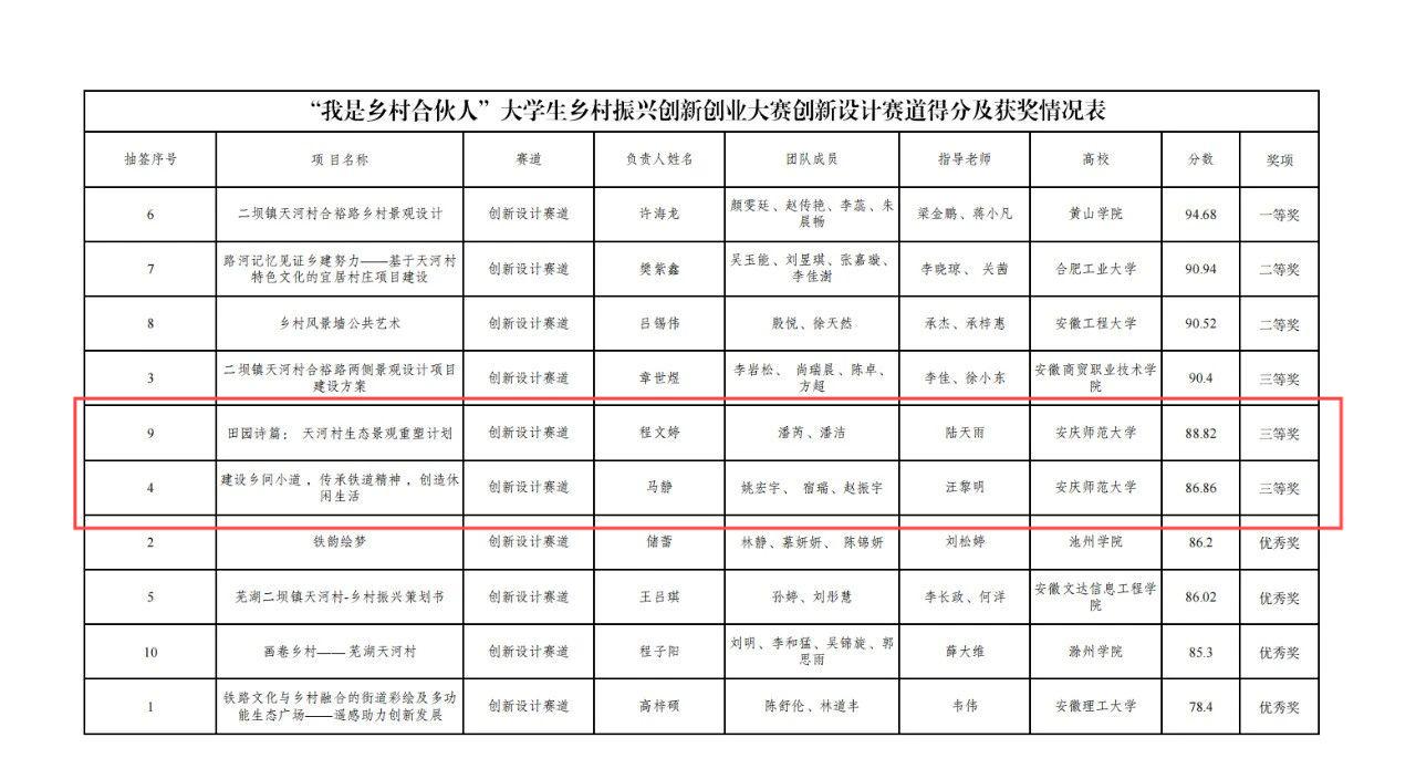 11月24日,“我是乡村合伙人”大学生乡村振兴创新创业大赛决赛在芜湖举办。纽约国际官网《田园诗篇:天河村生态景观重塑计划》《建设乡间小道,传承铁道精神,创造休闲生活》2项作品荣获三等奖。
