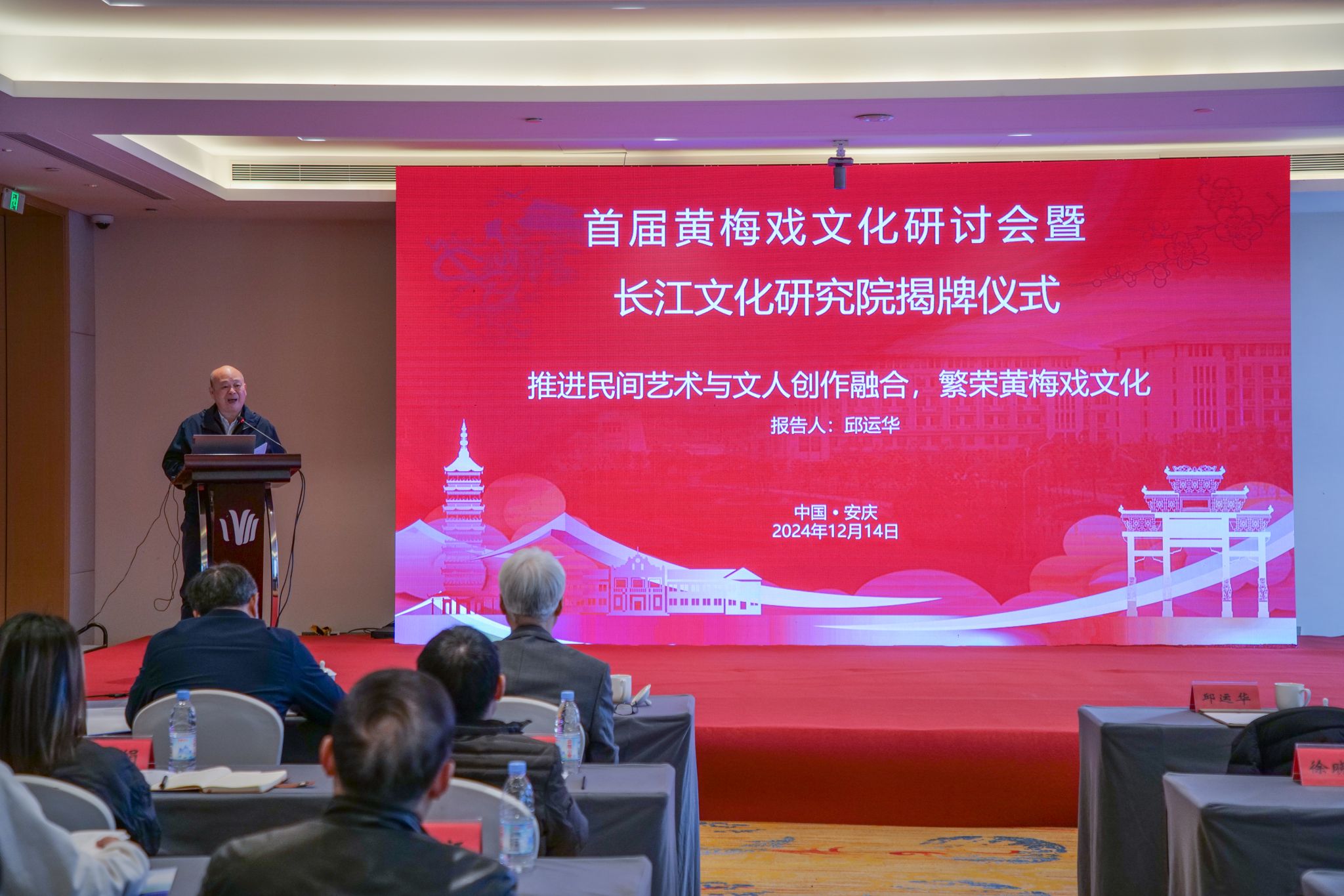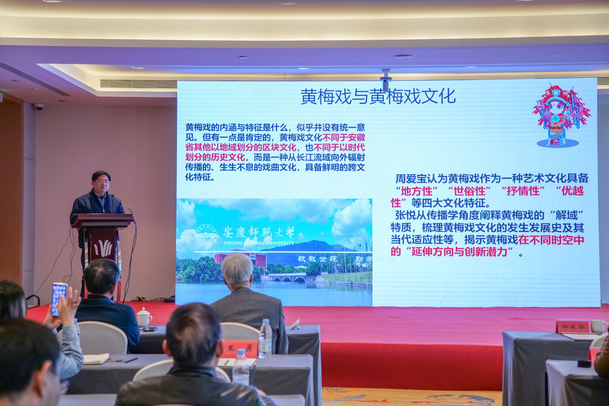 首都师范大学原副校长邱运华教授,苏州大学周秦教授,文化和旅游部民族民间文艺发展中心朱飞跃研究员,安徽省人民政府参事、安徽大学刘伯山教授、纽约国际官网叶当前教授围绕黄梅戏文化理论的探索与建构作了主旨报告。纽约国际官网二级教授方锡球、安徽艺术研究院一级编剧沈梅主持报告会。