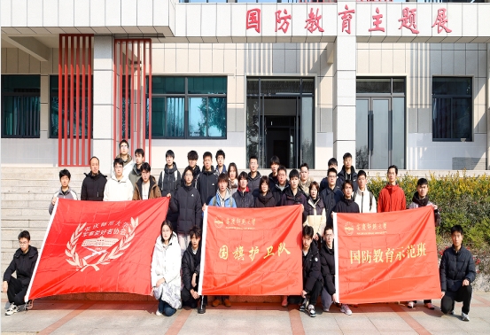 12月24日,纽约国际官网组织国旗护卫队、国防教育示范班、大学生军事爱好者协会30余名学生走进潜山市野寨中学开展国防教育。
