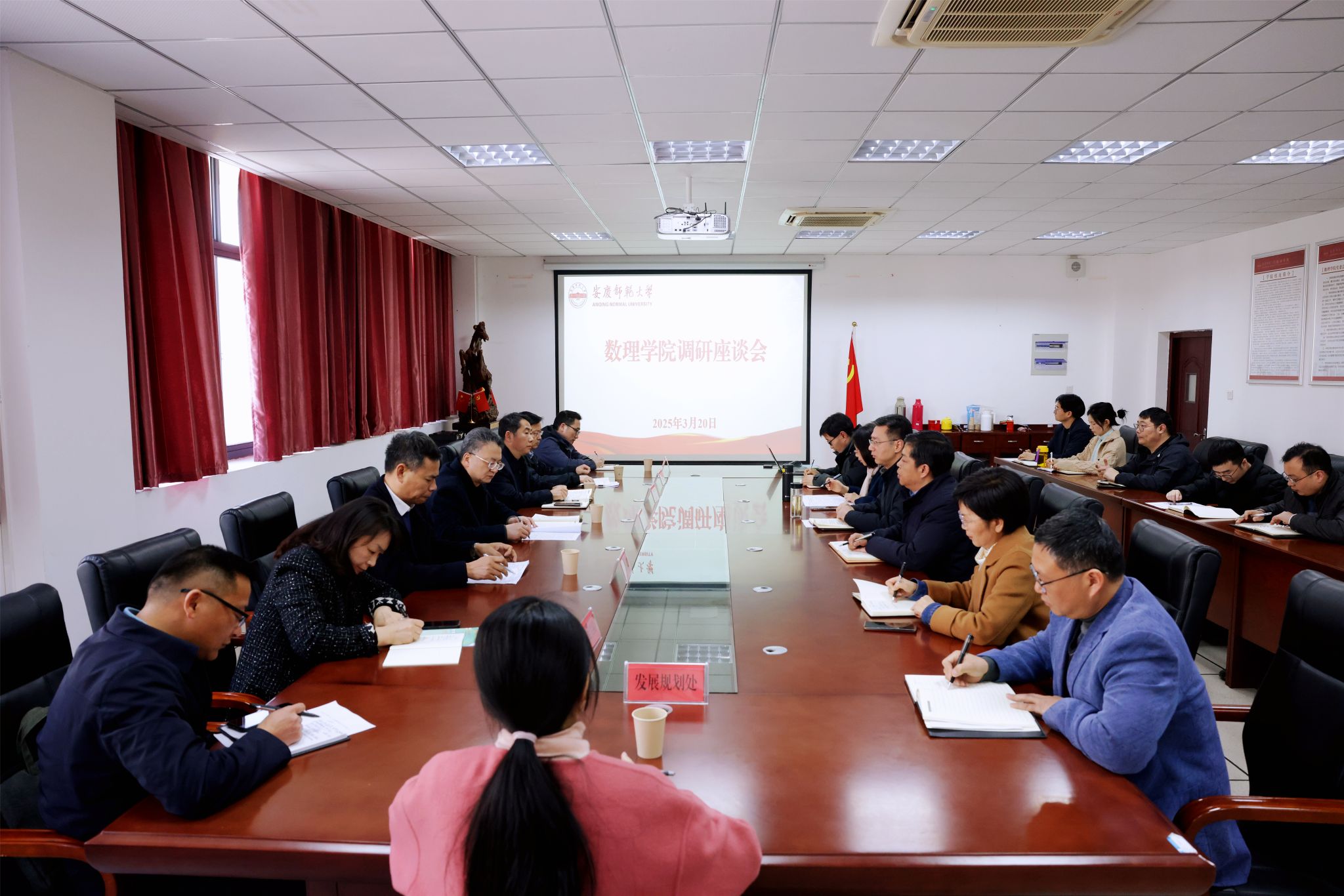 3月20日,校党委书记李福华、校党委常委张红飞一行赴数理学院调研。校办公室、发展规划处、人事处、教务处、科研处、研究生院、国际交流与合作处等职能部门负责人及数理学院党政班子成员、各科室负责人、党支部书记、教研室主任、副高以上职称教师代表参加座谈。