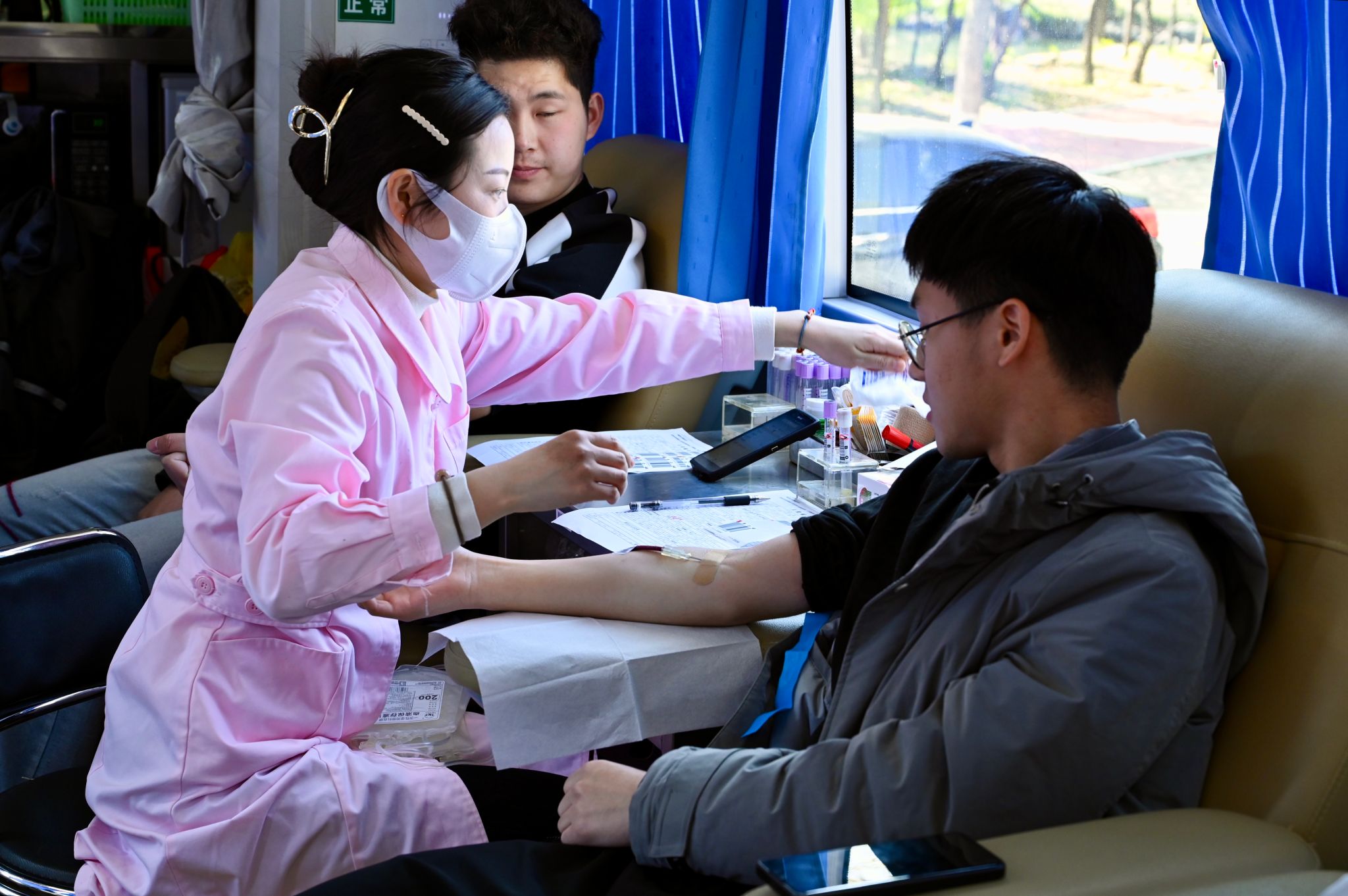 现场氛围浓厚,设有献血光荣榜、公益集市、签名墙等。活动为参与无偿献血的师生颁发《无偿献血证》《荣誉证书》,免费提供牛奶等营养品。
