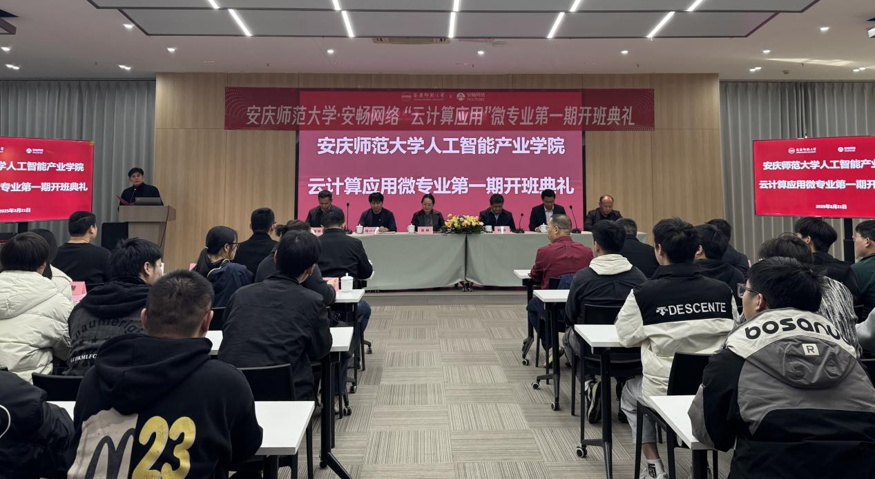 3月21日,学校举行云计算应用微专业第一期开班典礼。校党委常委、副校长吴琼出席典礼。安庆市委组织部副部长、人才工作局局长阮波,安畅集团总裁程小中,安庆市人才发展集团党委书记、董事长王中群,企业代表、教务处负责人、计算机与信息学院(人工智能产业学院)领导班子、教师代表及微专业全体同学参加典礼。