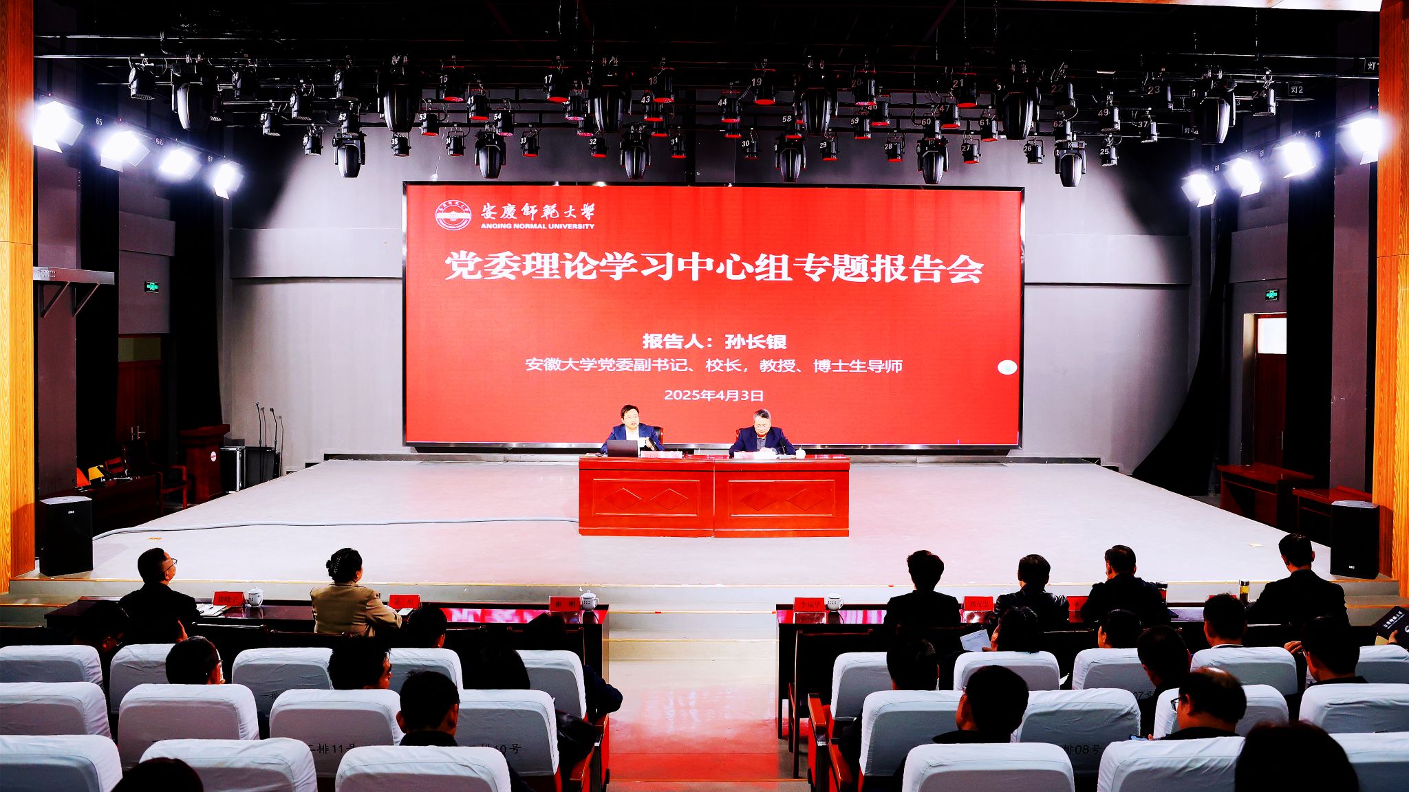 4月3日,校党委理论学习中心组举行学习(扩大)会,邀请安徽大学党委副书记、校长‌孙长银教授作《人工智能技术发展与社会影响》专题辅导报告。校领导班子成员、中层干部和相关部门、学院教师代表参加学习。校党委书记李福华主持报告会。