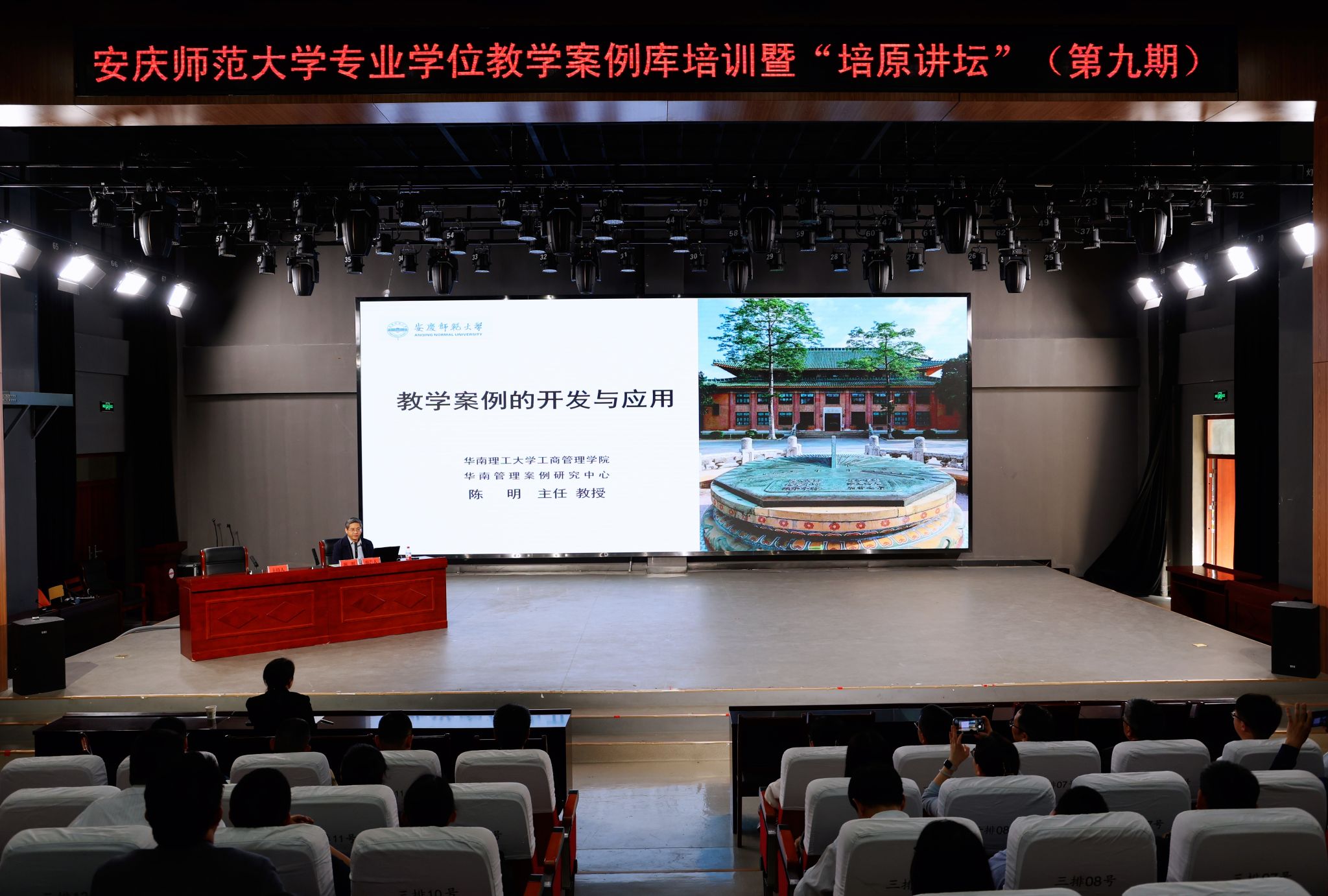 4月8日,学校在传媒学院演播厅举办专业学位教学案例库培训暨第九期“培原讲坛”,邀请华南理工大学陈明教授做专题报告。校党委常委、副校长吴琼会见陈明。各学院分管研究生教育负责人、近3年获批省级研究生专业学位教学案例库的项目负责人、全体研究生秘书、专业学位研究生代表、研究生院全体工作人员以及其他从事教学案例开发与应用的教师聆听报告。