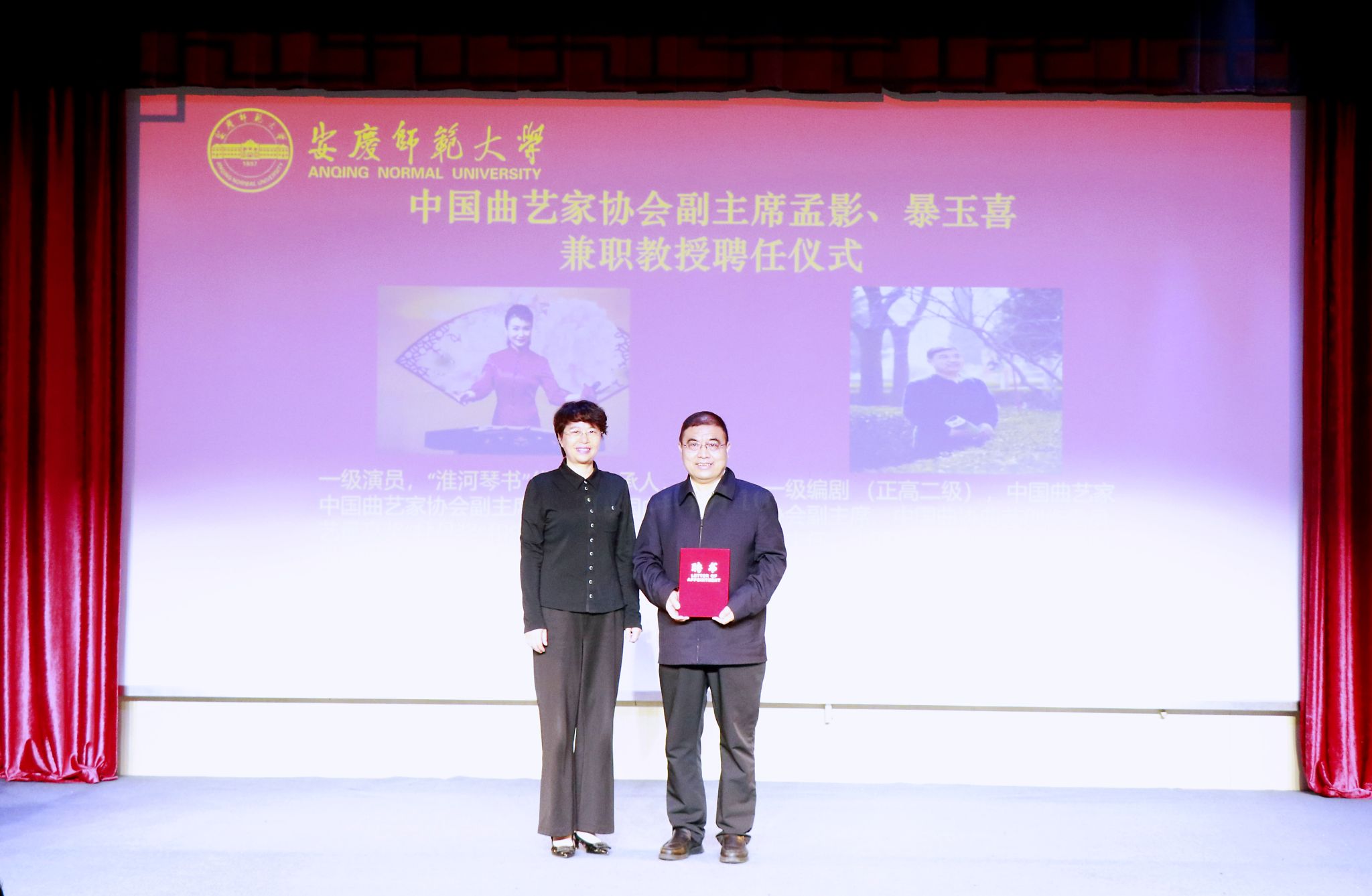 4月10日,学校举办曲艺学科兼职教授聘任仪式暨专家报告会。中国曲艺家协会副主席孟影、暴玉喜,校长彭凤莲,校党委常委、副校长徐晓宁,中国戏剧家协会副主席、黄梅剧艺术学院学术院长韩再芬,黄梅剧艺术学院班子成员及师生代表参加聘任仪式和报告会。聘任仪式由徐晓宁主持。