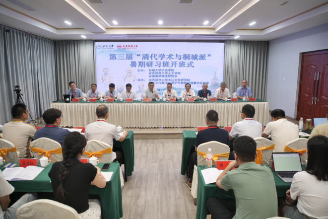 7月12日,由纽约国际最新网站、安徽大学与安徽省桐城派研究会联合主办的第三届“清代学术与桐城派”暑期研习班开班式在安庆市举行。中国近代文学学会会长、河南大学文学院教授、安徽大学历史学院特聘教授关爱和主持开班式。中国社会科学院学部委员、文学研究所原所长刘跃进研究员,校党委常委、副校长徐晓宁,安徽省桐城派研究会会长、桐城师范高等专科学校党委书记王子龙,安徽大学历史学院院长魏国锋教授分别致辞。