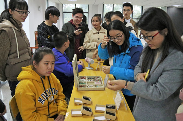 精美的手镯吸引学生驻足观看,几分钟的时间,卖品区就被学生里外三层包围了。“我感觉他们制作的手镯很精美,买了既可以自己戴,也能作为一个纪念物珍藏。”特殊教育专业2018级研究生吴晓宇买了一串手镯后说。