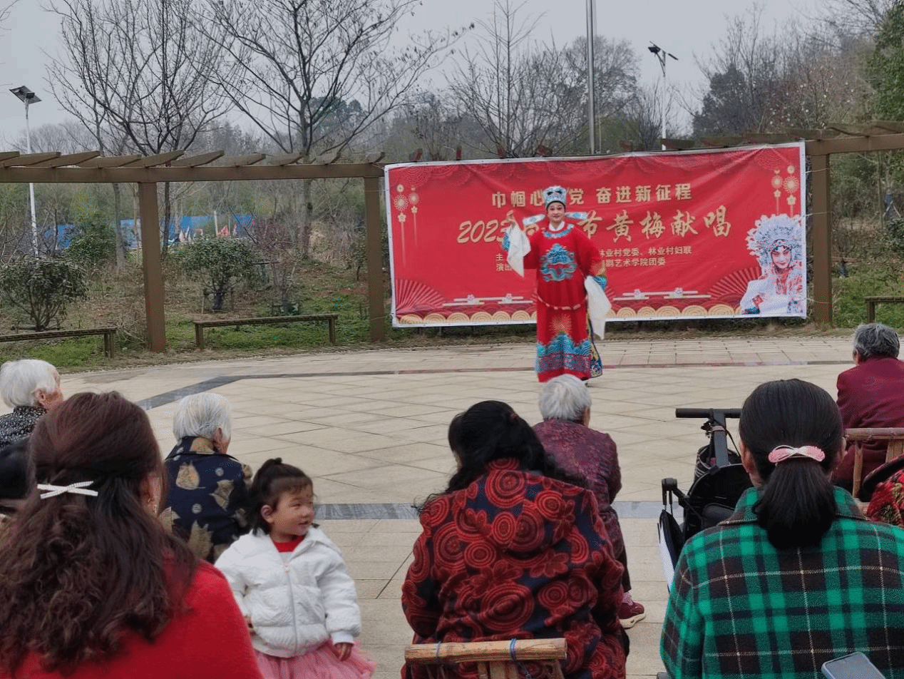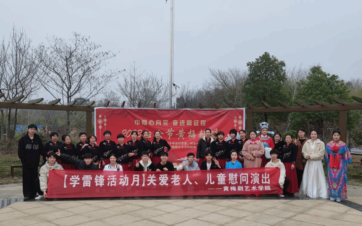 3月8日,黄梅剧艺术学院开展雷锋月活动,前往大观区十里铺乡林业村开展关爱老人、儿童慰问演出,演出活动在村广场进行。黄梅戏《小辞店》选段、《扈家庄》《夫妻双双把家还》《挂画》《三说媒》《女驸马》选段等节目精彩的表演,赢得了观众的阵阵掌声。