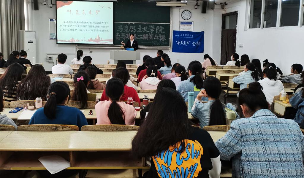 3月30日,马克思主义学院第二期青马工程培训班第六课开课。校“青年新声”宣讲团开展了“学习贯彻党的十九届六中全会精神,做新时代新青年”的主题宣讲。