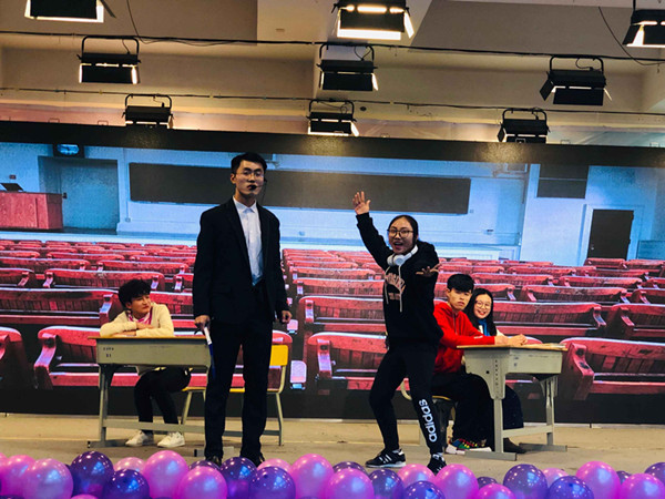 心理情景剧《大学初体验》分为入学、宿舍、课堂、恋爱四个场景,11名同学演绎新生入学时候的不适应、进宿舍后人际关系的矛盾、大学课堂上师生观念态度冲突等心理健康问题,为同学们解决困惑。学前教育专业2018(1)班的蔡沚青作为表演者为此比赛准备了近1个月的时间,她说:“为了更好融入角色,比赛前我就一直将自己沉浸在剧情之中,今天的表演放得很开,所以感情挺到位的。”