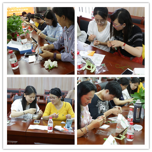 6月24日下午,行政楼421会议室内清香四溢,欢声笑语。近百名女教工齐聚一堂,现场感受手工制作香囊的乐趣。只见我们的女教工们凝神静气,飞针走线,外包丝布,内装香料,再以五色丝线弦扣成索,加上铃铛结成一串。不一会儿,一团团五彩丝线和丝布在女教工的手下,就变成了一个个形形色色、玲珑夺目、小巧精致的五彩香囊。