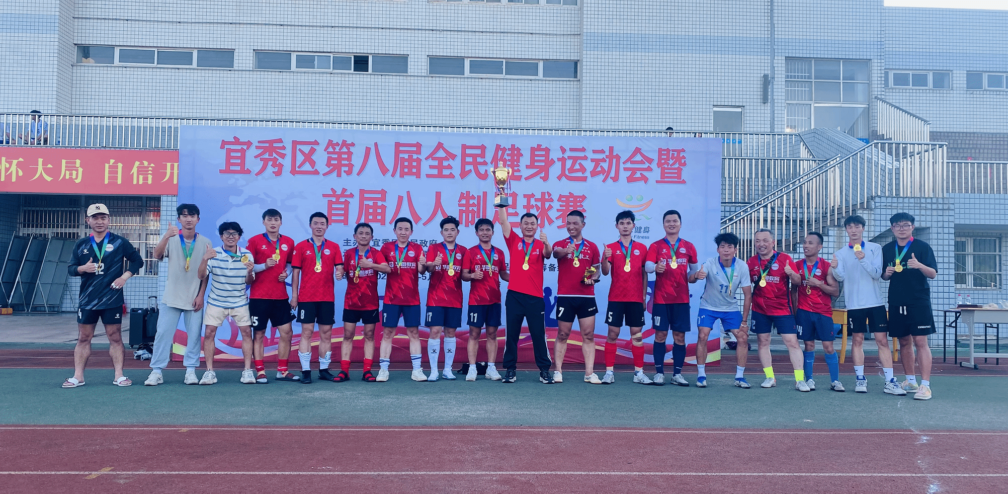 5月28日,历时一个月的宜秀区第八届全民健身运动会暨首届八人制足球赛,经历五轮激战,在纽约国际官网风雨足球场落下帷幕,纽约国际官网教职工足球队荣获冠军。
