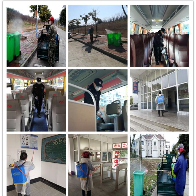 突击队每天两次对行政楼、教学楼、学生宿舍、教职员工宿舍、医院、后勤综合楼、两校大门口、会议室、专家楼、东苑食堂改造工地等场所和重点区域进行卫生清理保洁和消毒杀菌。为了减少细菌的滋生,保洁人员定期对校园公共区域的垃圾桶进行清理、擦洗和消毒;每天上午和下午两次对班车内进行消毒和保洁。