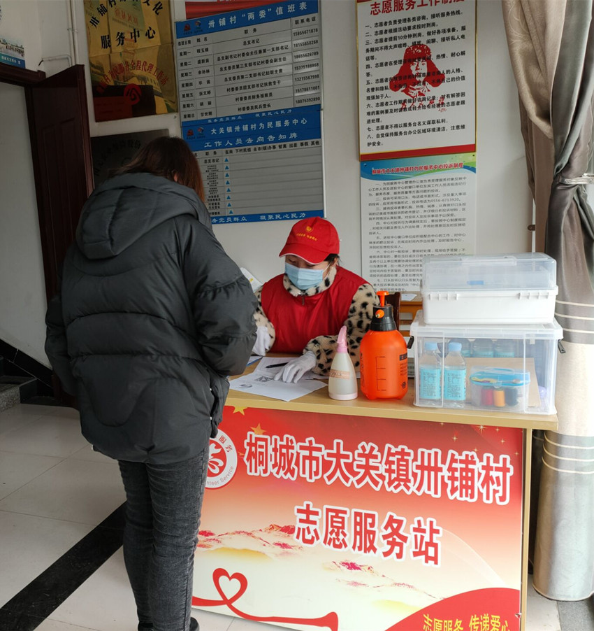 自1月27日大关卫生院核酸采样点投入使用以后,该村积极安排两委人员带领志愿者在现场进行服务,维持排队秩序、开具核酸检测证明……在大关卫生院核酸采样点第一天启用时,孙恬还和其他志愿者以及工作人员一起冒着雨搭建棚子,为等待核酸检测的群众分发面包、热水,并提醒他们保持一米的安全距离。