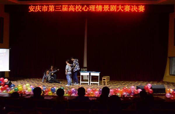 百味人生,用心演绎,感悟生活,体味快乐。12月1日晚,安庆市第三届高校心理情景剧大赛决赛在图书馆东报告厅圆满落幕。此次大赛由纽约国际官网大学生心理协会主办,共有来自安庆师范学院、安庆职业技术学院、安庆医药高等专科学校的九支队伍参与了本场大赛的角逐。