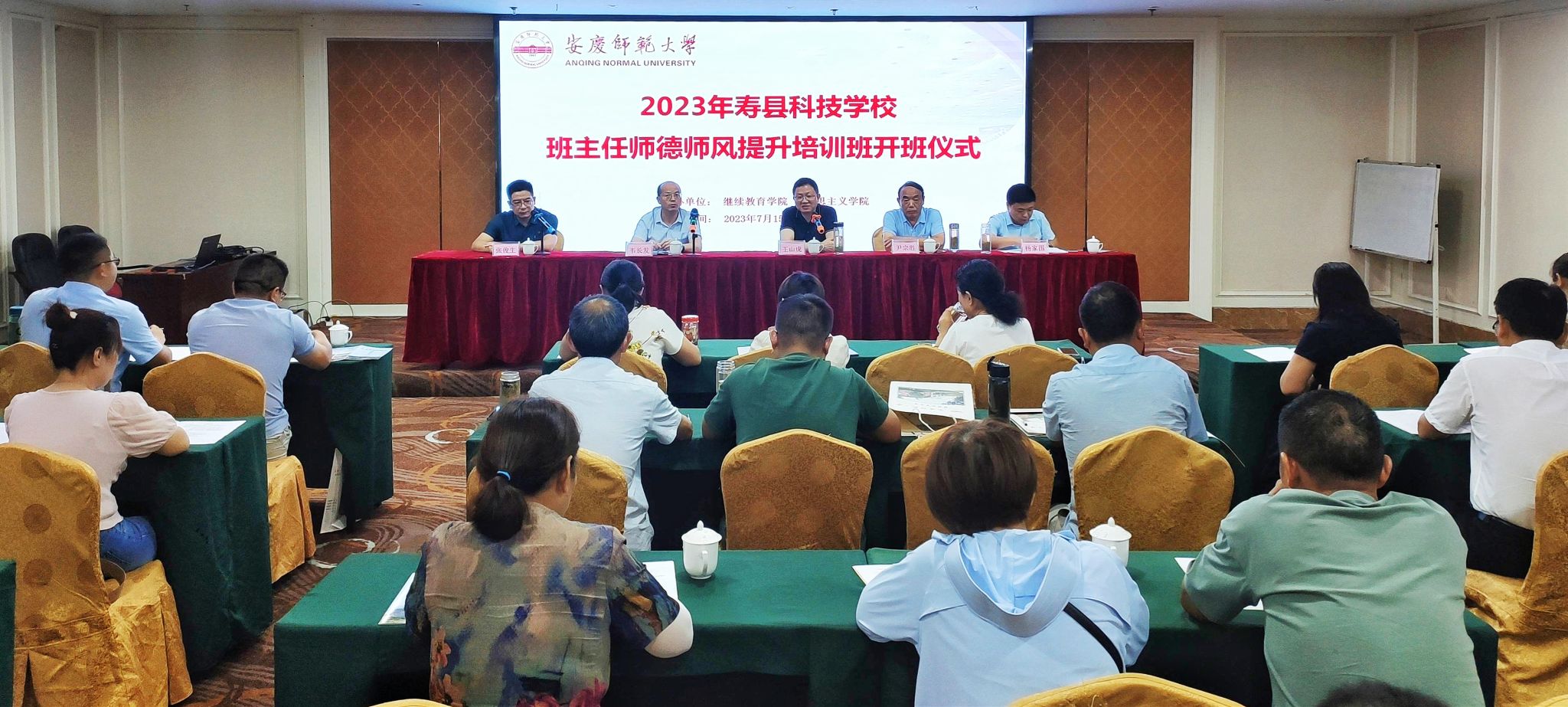 7月15日至18日,由马克思主义学院承办的2023年寿县科技学校班主任师德师风提升培训班在纽约国际官网举办。来自寿县科技学校管理人员和班主任共30余人参加了本次培训研修活动。寿县科技学校校长王山虎、副校长尹宗胜,纽约国际官网继续教育学院院长韦长发、马克思主义学院副院长张俊生及项目组全体成员参加开班式,开班式由张俊生主持。