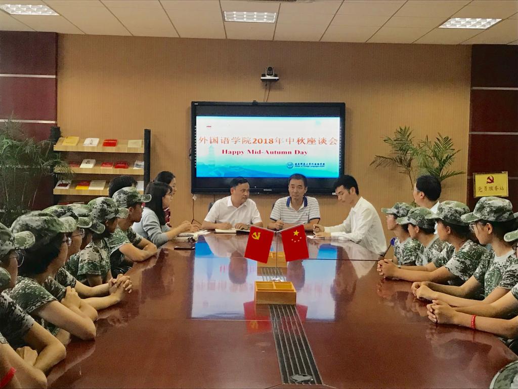 9月21日下午,外国语学院2018年中秋节慰问座谈会召开。学院副院长江加宏、党委副书记夏斐,2018级外省籍新生及部分困难生代表参加了会议。