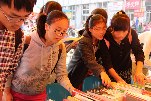 大到自行车、吉他、懒人桌,小到杯子、笔筒、发卡等用品,各种商品应有尽有。其中出售最多的是书籍类,有考研资料、课外辅导书、小说、杂志等,不少同学前来选购。法学专业13级的李园园同学和室友都淘到了自己心仪的书,一人收获一本《牛津高阶英汉双解词典》。“这个活动让书籍可以循环利用,比较符合现在绿色、低碳的环保理念,而且价格也便宜,在书店买要100元左右,现在才20块钱,真划算!”