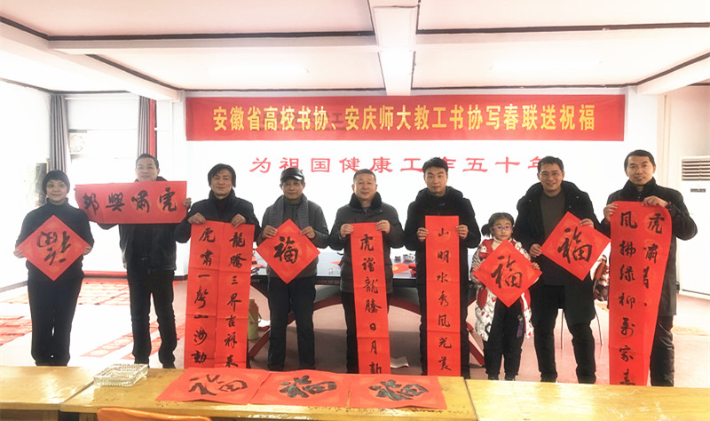 1月13日,校工会主办、省高校书协安庆师大教工书协开展2021年“写春联,送祝福”活动。安庆市和纽约国际官网书法家应邀到场为纽约国际官网教职工挥毫书写春联,送上了美好的新年祝福。