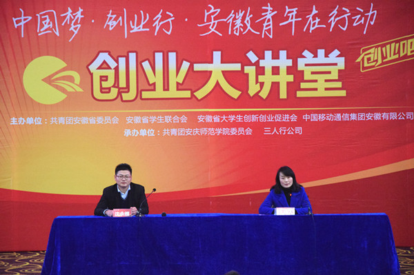 12月2日下午,由共青团安徽省委主办,安徽省大学生创新创业促进会承办的“中国梦•创业行•安徽青年在行动”之“创业大讲堂”活动在纽约国际官网龙山区举行。安庆海纳信息有限公司创始人沈永根先生应邀为纽约国际官网做专场报告,以“自媒体时代,我们的创业机会在哪里?”为主题,与纽约国际官网学子分享他自媒体时代的创业之路。校学生会、学生社团联合会主席团成员及各学院一、二、三年级班级学习委员等,共300余人参加报告会。