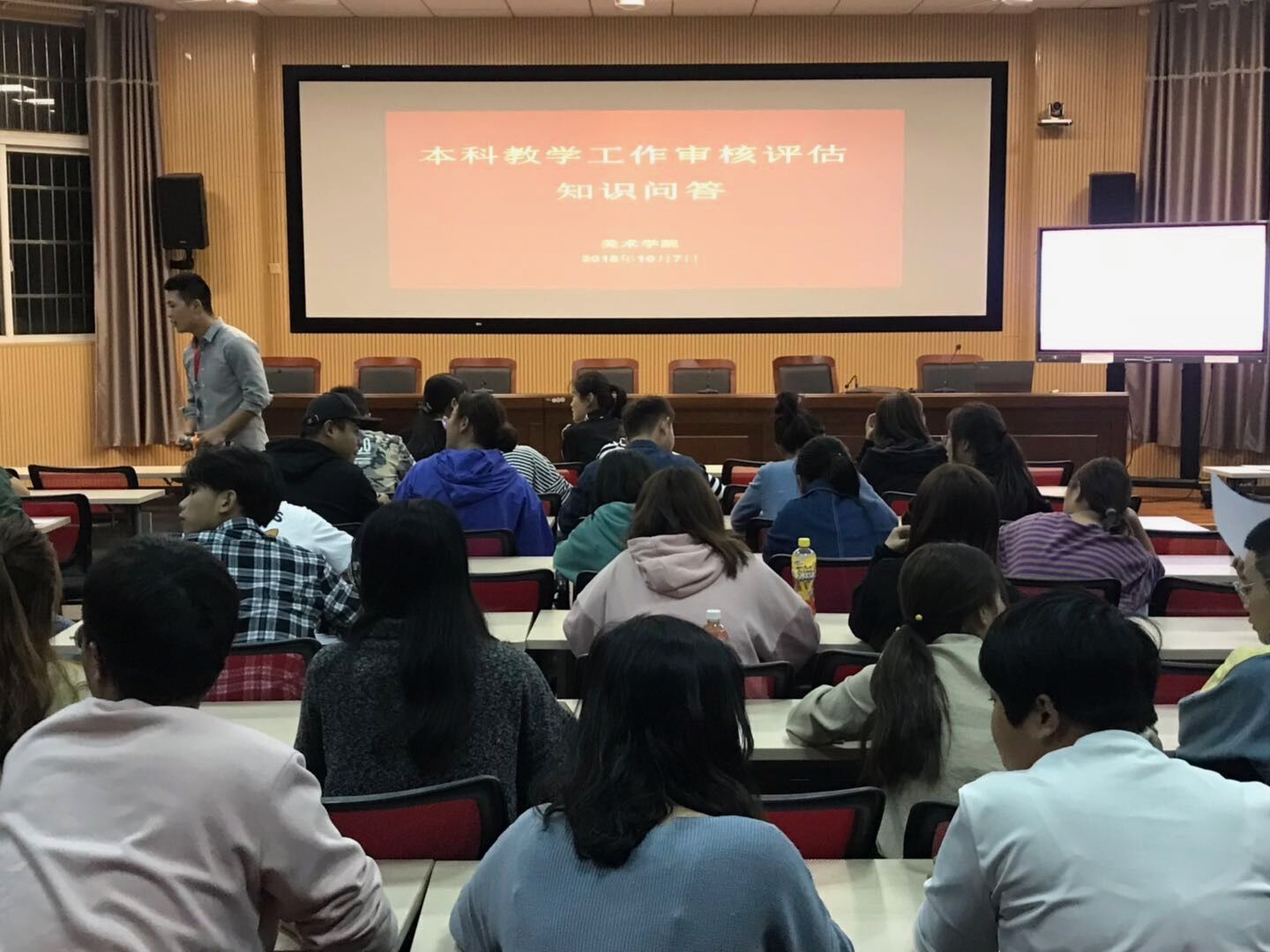 10月7日晚,美术学院在学术报告厅举行本科教学工作审核评估知识问答活动,学院一至三年级各班学生通过学号随机抽取的形式参加了此次活动。