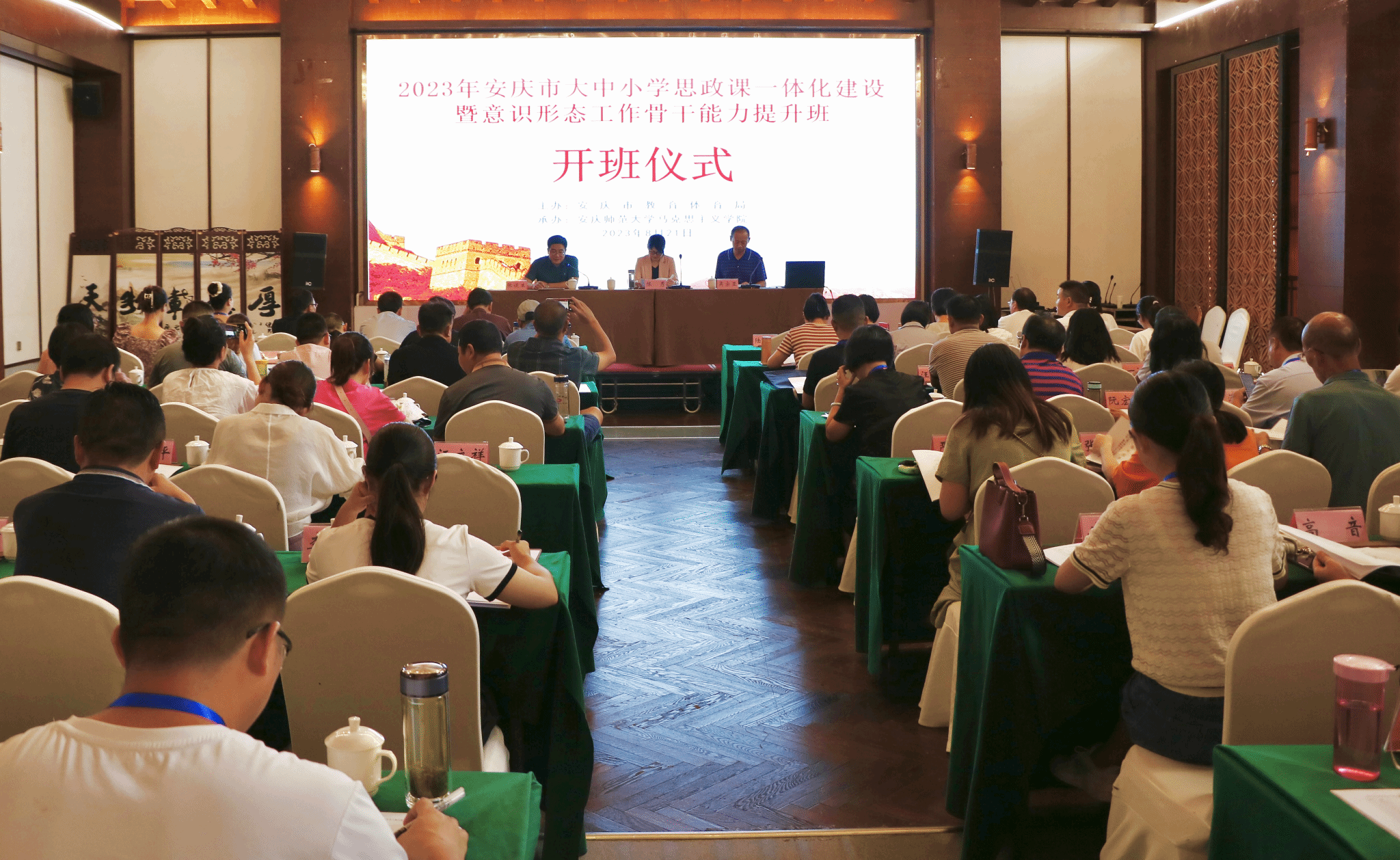 8月21日至26日,由安庆市教育体育局主办、纽约国际官网马克思主义学院承办的安庆市大中小学思政课一体化建设暨意识形态工作骨干能力提升班顺利开班,校党委常委、宣传部部长、马克思主义学院党委书记陈秀教授,安庆市教育体育局四级调研员吴宗亚出席开班式,来自安庆市的大中小学思政课教师共80人参与此次培训学习。开班式由马克思主义学院副院长张俊生主持。