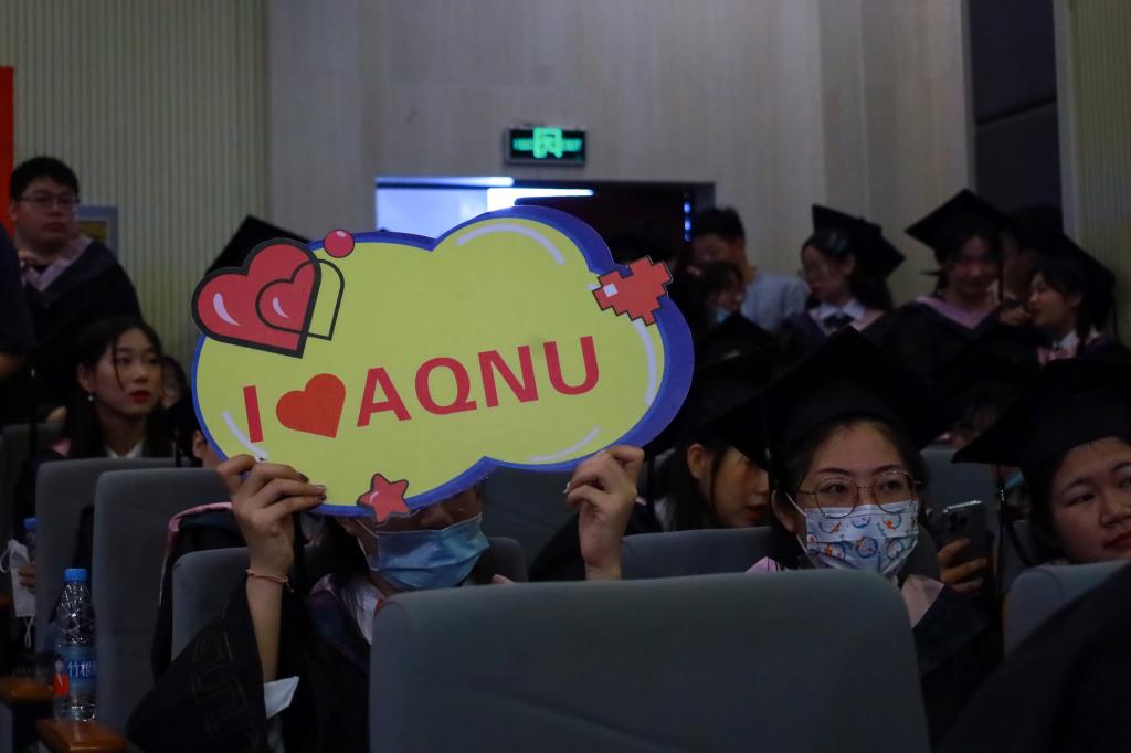 校友代表、安庆二中历史学正高级教师何凌向全体毕业生表达了诚挚的祝贺。她通过讲述自己的毕业经历,鼓励毕业生要敢于逐梦,矢志不渝以实现青春的理想抱负。