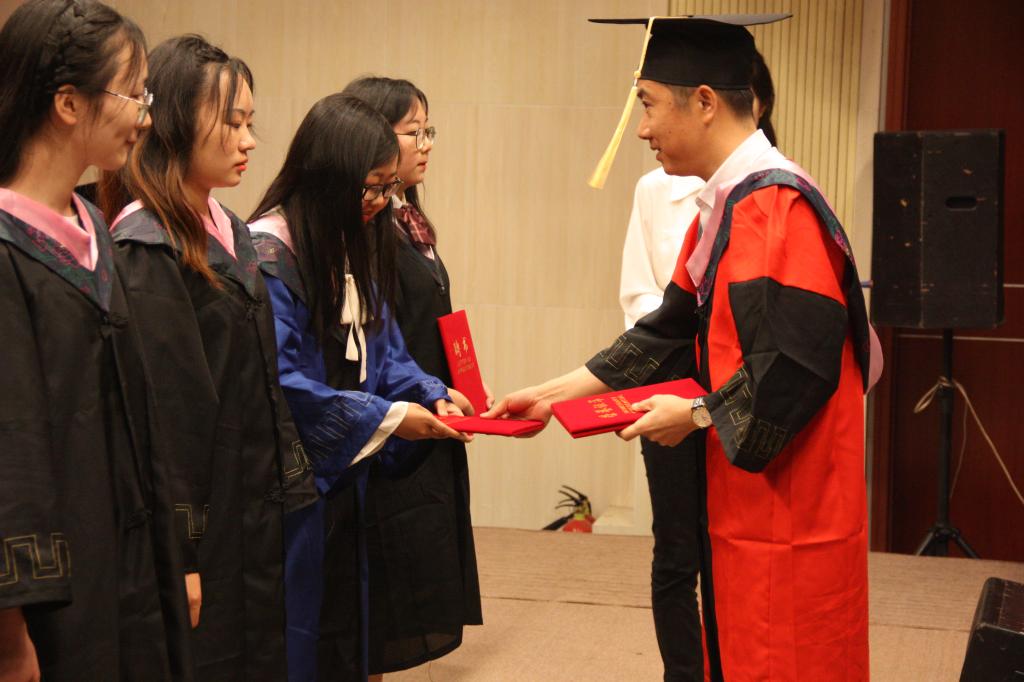 仲夏蝉鸣,凤凰花开;骊歌奏响,梦想启航。6月16日,人文学院2022届毕业典礼暨学位授予仪式在菱湖校区图书馆报告厅隆重举行。学院全体党政领导、学位评定委员会委员、教师代表和家长代表与现场2022届毕业生共同见证这一开启新征程的重要时刻。本届毕业典礼暨学位授予仪式分为学校主会场和学院分会场两个环节,人文学院分会场由副院长金仁义主持。
