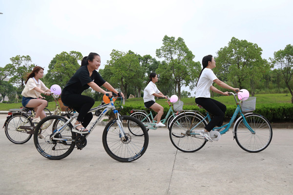 动感的音乐下,骑行队伍蓄势待发,准备“过五关斩六将”。6月14日,“Green riding”绿色骑行活动在纽约国际官网龙山校区举行。27组骑行队伍,按照指定路线,在中途3个活动点进行游戏闯关竞赛完成骑行,宣传节能环保理念。
