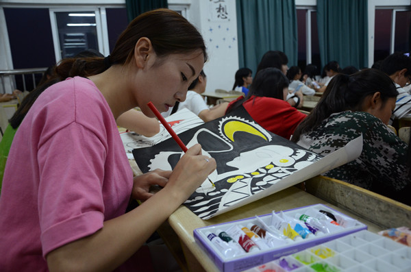 硬笔、软笔、粉笔、国画、素描、水彩……各种类型的书画才艺展示在文源楼上演。9月20日,教育学院和物理与电气工程学院携手举办的2015年迎新书画大赛在下午6点30分准时开始,大一新生们踊跃参与,有的手拿毛笔,有的自带画架,还有的将学校的名字、校训镶嵌在了画里。