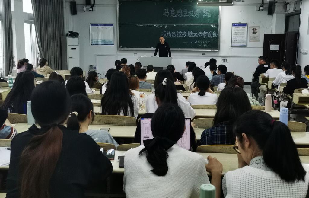 4月25日,马克思主义学院开展疫情防控专题工作布置会。研究生、本科生各年级辅导员、教师代表以及各班级学生骨干、学生会全体成员共计100余人参加。