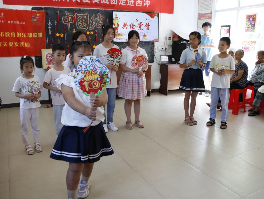 为达到最佳演出效果,给村民们呈现精彩的表演,志愿者和孩子们精心设计节目内容,带着孩子们一遍遍地排练。节目负责人胡昇说:“我们紧扣建党一百周年的主题,用孩子们更易接受的方式传达的‘一心一意跟党走’的价值理念,做传承红色基因的桥梁。”