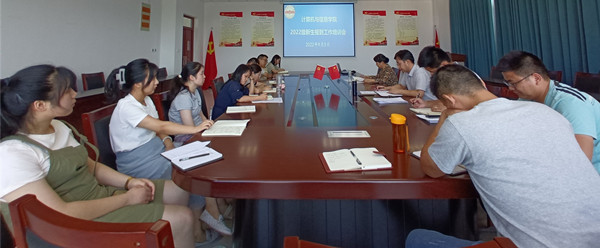 刘燕杰传达了学校关于迎新工作的专题会议精神,强调了迎新工作的重点内容,并对学院迎新工作进行了周密安排布置,他要求全体与会教师要全面深入了解熟悉工作流程,做好新生报到前、报到当日、报到后的各项准备工作,确保各环节快速、有序、安全,开学后要及时开展入学认知和适应性教育。团委负责教师介绍了学院迎新工作方案,就新生报到疫情防控有关要求,迎新时间节点、工作流程、任务分工和注意事项做了详细讲解。