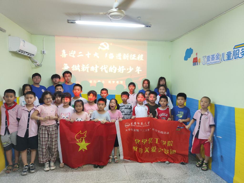全方位知识宣讲、多维度培养兴趣、立体式党史学习……近日,化学化工学院“童行携力,筑梦希望”教育关爱实践团赴安庆市迎江区儿童之家暑期成长营,开展为期10天的暑期“三下乡”社会实践活动。