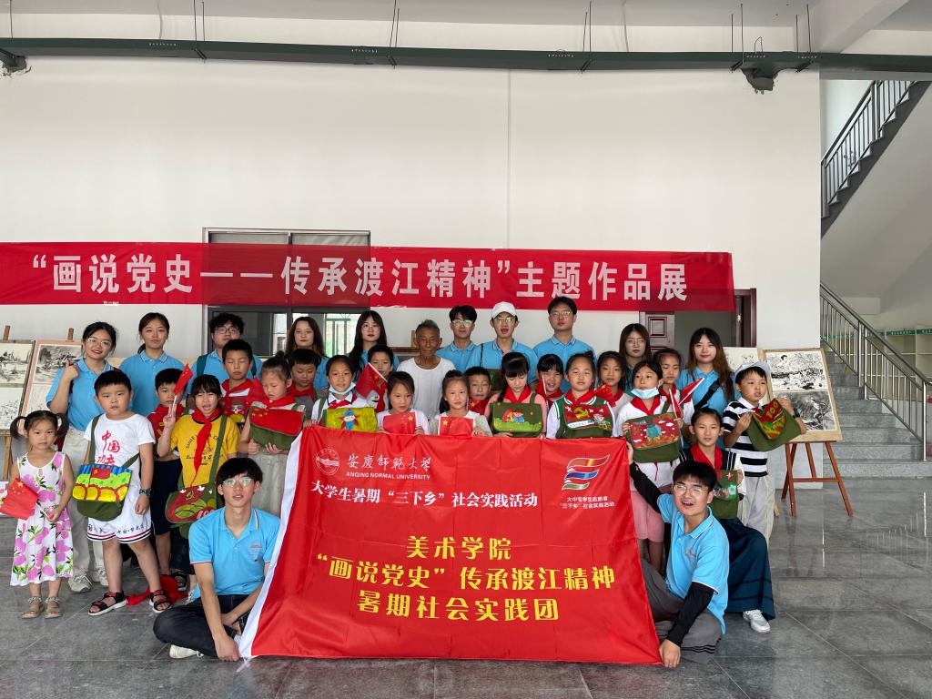 在场的美术学院暑期“三下乡”团队“画说党史——传承渡江精神”实践团的学生和安庆市丁家小学、漳湖中心小学30余名小学生认真听完了董老的故事,内心感到激情澎湃。“说实话,听到当年村民受到国民党、土匪以及日本人多重压迫,以及看到纪念馆里面当年的物证时,我的心情是悲愤的。”团队成员李月激动地说,“只有抗争才能争取解放救中国,渡江英雄们的事迹值得我们永远铭记和学习!”
