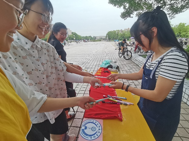 6月9日,由大学生科技化学协会骨干成员组建的“纤尘不染”低成本高效吸尘电动黑板擦项目团队在敬敷广场举行“变废为宝--废旧牙刷有偿回收活动”。本次活动一共有68位同学参加,共收到150余支废旧牙刷。