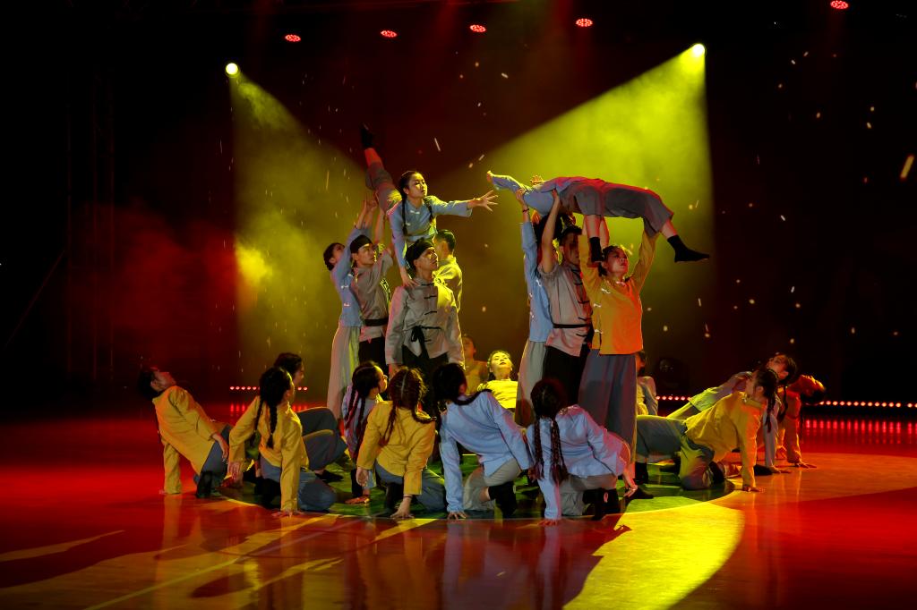 晚会分为“同心共筑中国梦”“携手奋进新征程”两大篇章。18个精彩的节目轮番上阵,来自体育表演专业3个班级的90名同学以扎实的专业学习成果向党的二十大胜利召开献礼,用动感的节拍为青春留下美丽的音符。