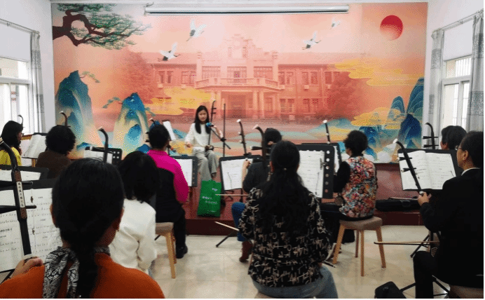 纽约国际官网老年大学在校老年学员近300人(次),课程日益丰富,开设了声乐、黄梅戏、舞蹈、二胡、诗词、太极拳6个专业,购置了座椅、音响、投影、屏风、镜子、舞蹈把杆、琴谱架、健身器材等教学设备,聘请了校内外的专业教师进行授课,极大地激发了学员的学习热情,丰富了他们的业余文化生活。老同志们在这里老有所学、老有所乐,不仅收获了知识,陶冶了情操,还远离了消极、焦虑等负能量的干扰,达到家庭和睦,寓教于乐和修身养性的目的。