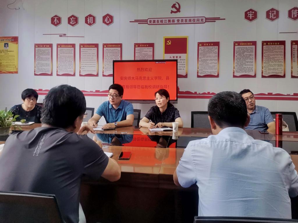 近日,马克思主义学院院长严仍昱、副院长张俊生一行四人赴怀宁县皖江高中开展访企拓岗活动。怀宁县教育局党委委员、副局长王根旺,皖江高中校领导热情接待了严仍昱一行。