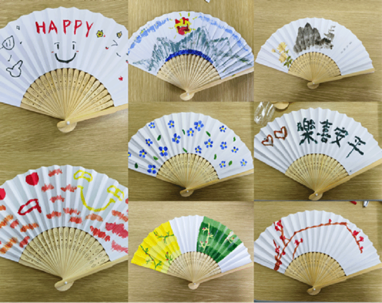 “我从小就对画画充满热情,喜欢画自己喜欢的卡通人物和玩具,这次在纸扇上画画,是一种非常特别的体验!”孟鑫雅同学认为,画画是轻松而愉快的,她也将这份轻松和愉快的心情注入了纸扇中。