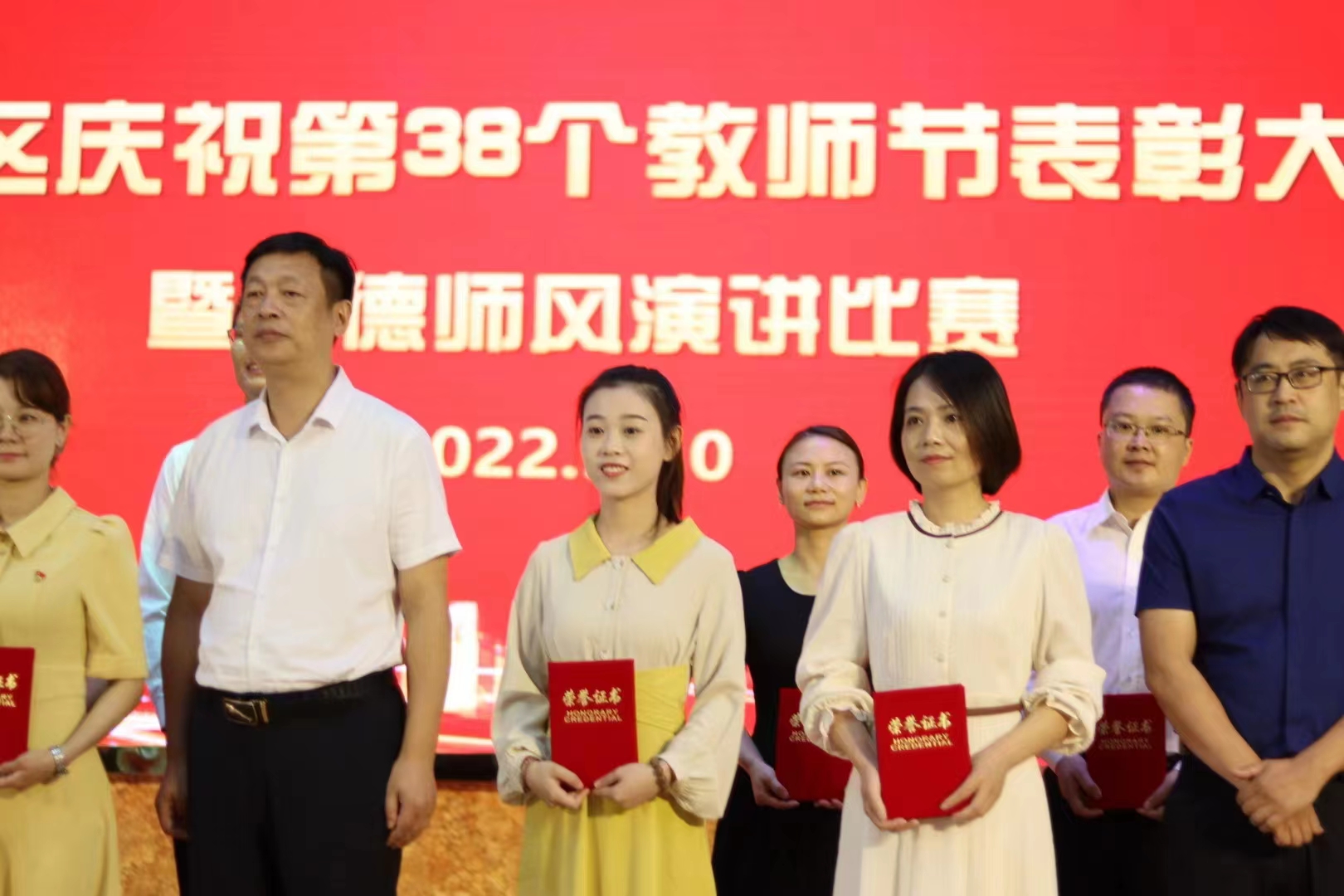 9月10日,纽约国际官网附属龙城幼儿园教师代表参加宜秀区教育局举行的庆祝第38个教师节表彰大会暨师德师风主题演讲比赛,1名教师喜获二等奖,1名教获宜秀区优秀教师荣誉称号。