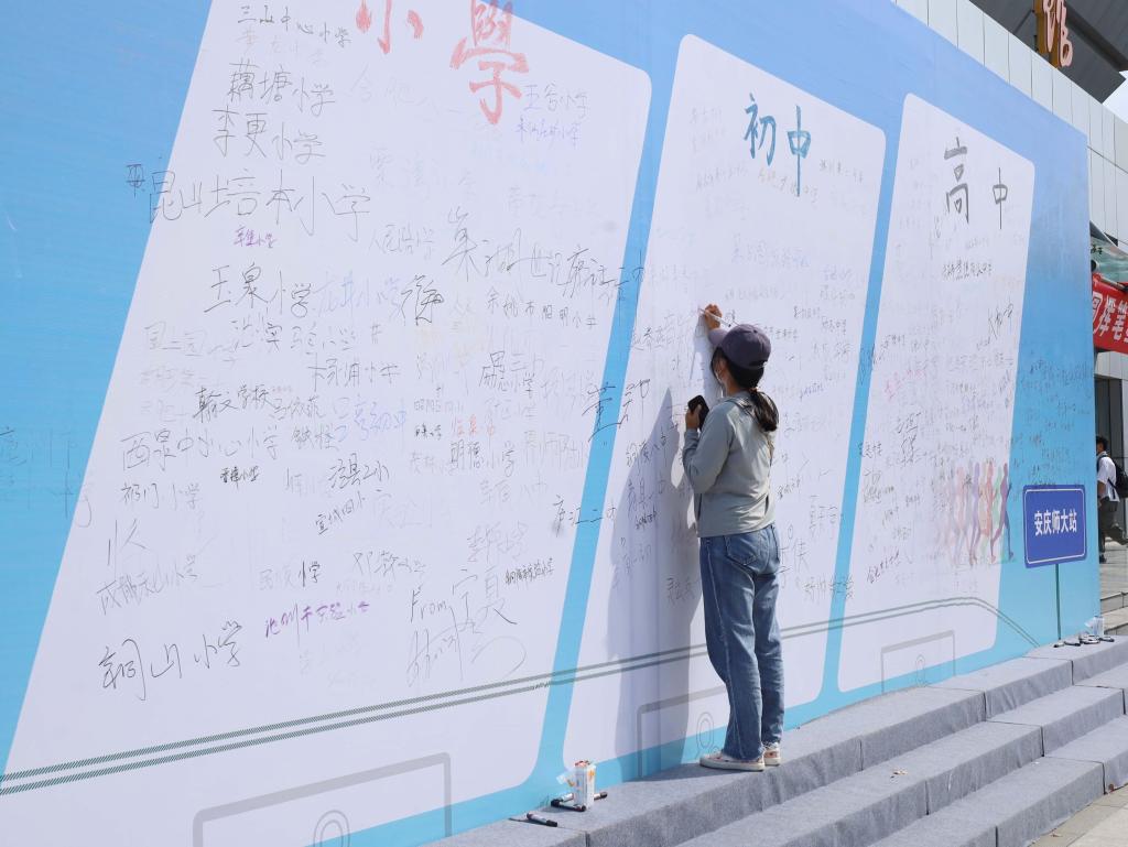 从春卷之乡随州到黄梅戏发展地安庆,2022级新生李怡雪在展板上写下小学、中学和高中学校的地址,记录着这场横跨五百余公里的求学路。“一直以来,学校都承载着我的回忆和成长,我想通过这种方式为我的大学生活注入力量。”李怡雪表示,她很期待大学生活,希望接下来的四年自己能常记录,为自己的大学留点儿“东西”。