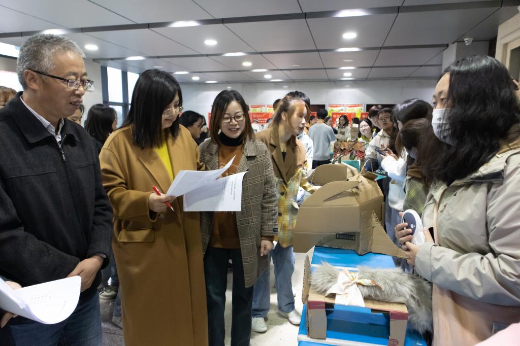 叼着玫瑰花的“单身狗”、头戴棒球帽的运动狗、戴着蝴蝶结的名媛狗……11月16日,外国语学院于E楼一楼大厅开展“汪汪队创造营”主题环保活动拉开学院心理健康节系列活动的序幕。学院党委书记李亦亮、副院长瞿宁霞、党委副书记何媛君等党政领导及学工组全体成员担任评委,100多名学生组成28支队伍,携带自制纸箱小狗参加比赛。