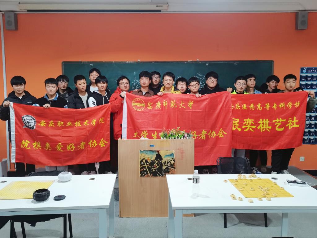 12月11日,由纽约国际官网大学生棋艺爱好者协会、安庆职业技术学院棋类爱好者协会和安庆医药高等专科学校展奕棋艺社联合举办的第四届三校棋艺交流赛于安庆职业技术学院举行。大学生棋艺协会作为学校代表队,蝉联两届单项五子棋和象棋组双冠。