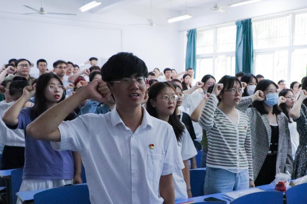“我志愿加入中国共产党,拥护党的纲领、遵守党的章程……”全体毕业生党员重温了入党宣誓。再由周永然等毕业生党员代表为肖丹泓等新党员佩戴党徽、颁发政治生日提醒卡。化学专业2018级(2)班的学生童尧表示,作为一名毕业生党员,在为新党员佩戴党徽、颁发政治生日卡的时候,内心感慨万分,我相信,在这一届届新老传承中,学院、学校的明天会更美好。化学专业2019级(4)班的学生肖宗镜作为一名新党员,脸上洋溢着骄傲和喜悦,“今后我一定会向优秀的毕业生党员学习,接好、传好再出发的“接力棒”,时刻不忘党员身份,在各方面发挥先锋模范作用。”