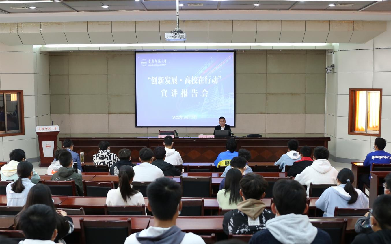 10月15日,党委统战部举办“创新发展∙高校在行动”宣讲报告会。九三学社安庆市委副主委、计算机与信息学院副院长王远志教授作宣讲报告。党委统战部副部长陈广主持报告会。