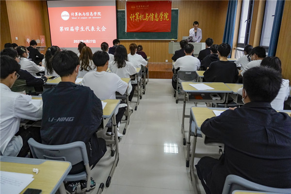 4月27日,计算机与信息学院在L314召开了第四次学生代表大会。学院党委副书记江晋剑、部分辅导员、学生代表等共计140人参加此次大会,团委负责教师主持会议。