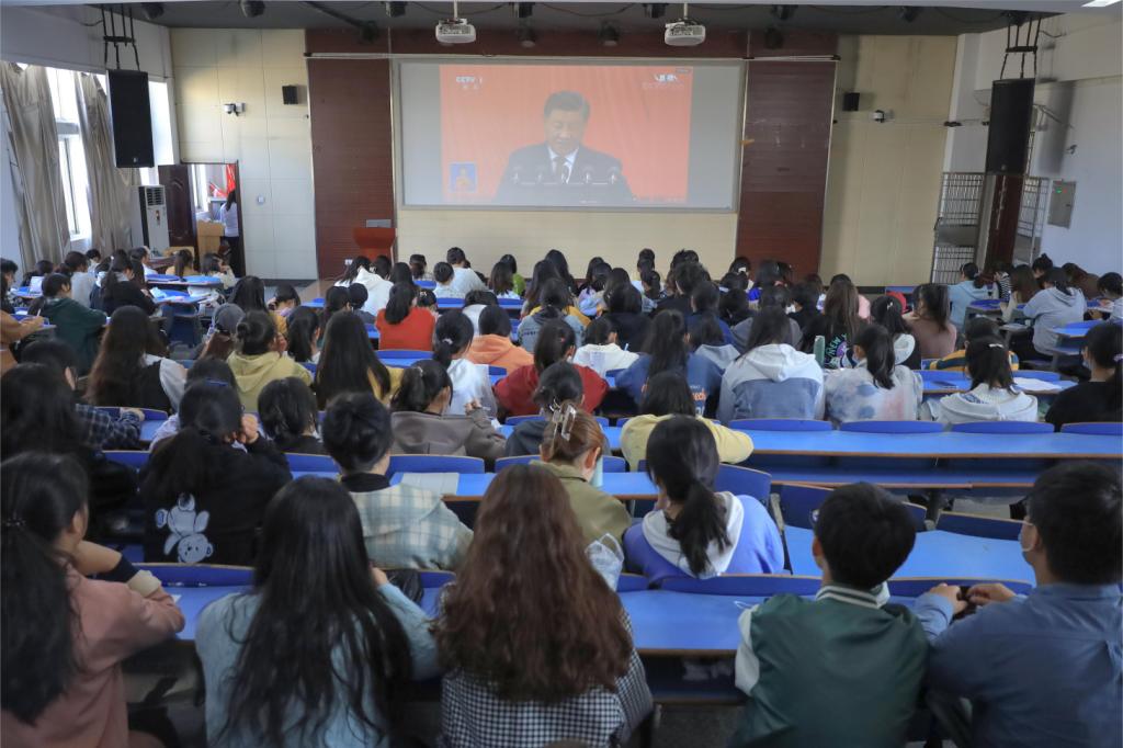 “党的二十大的召开是党和国家政治生活中的大事,学院组织集中收听收看,可以使同学们提升自身思想觉悟,从党的二十大报告中汲取力量,更是一次很好的党性启蒙教育。”学院团委负责人表示。